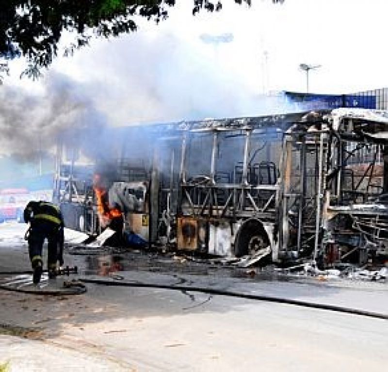 Ônibus equivocadamente queimado por populares em Campinas.